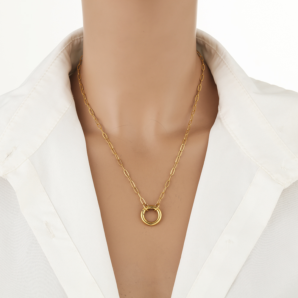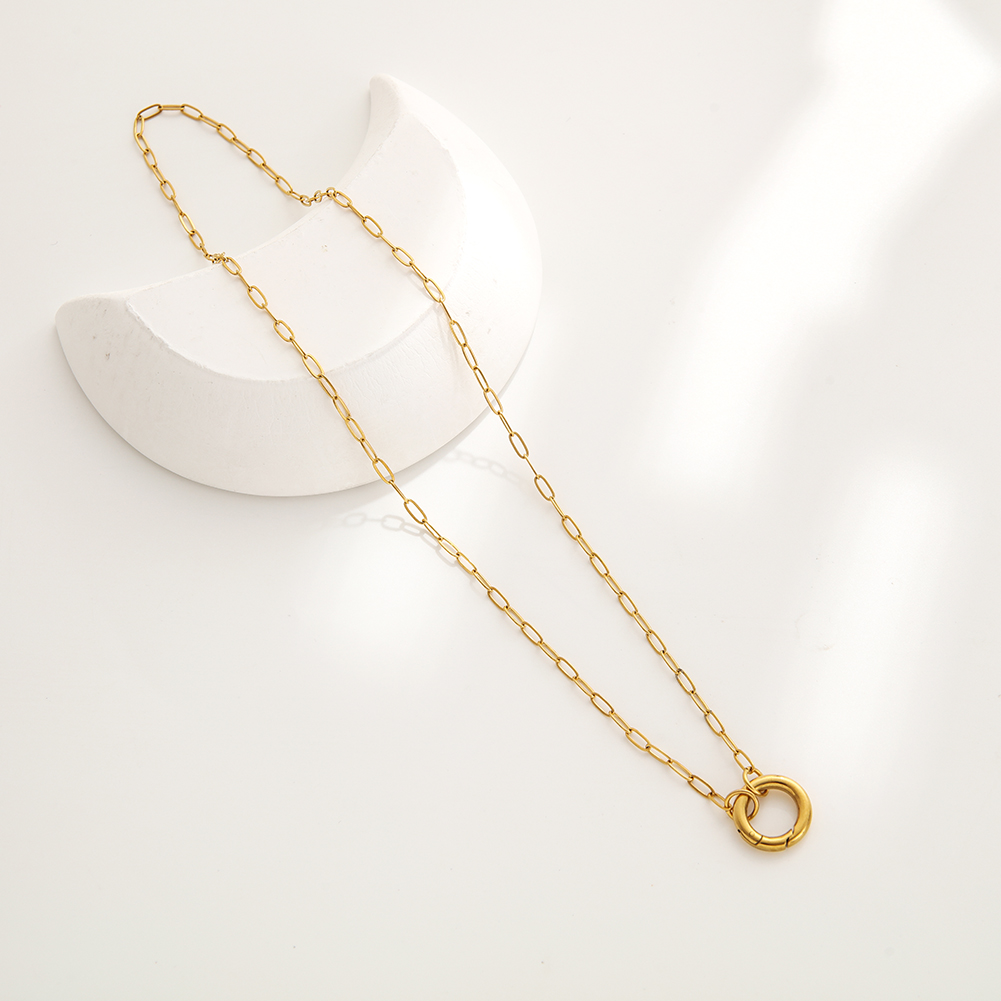 necklace include a circle clasp which can clip on charms .